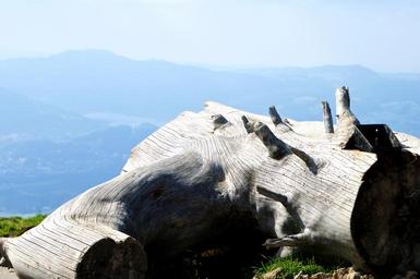 Keywords: log branch dry weathered waymarks watering hole hike mountains alpine meadow pasture mountain meadows animals nature landscape sky clouds blue alm