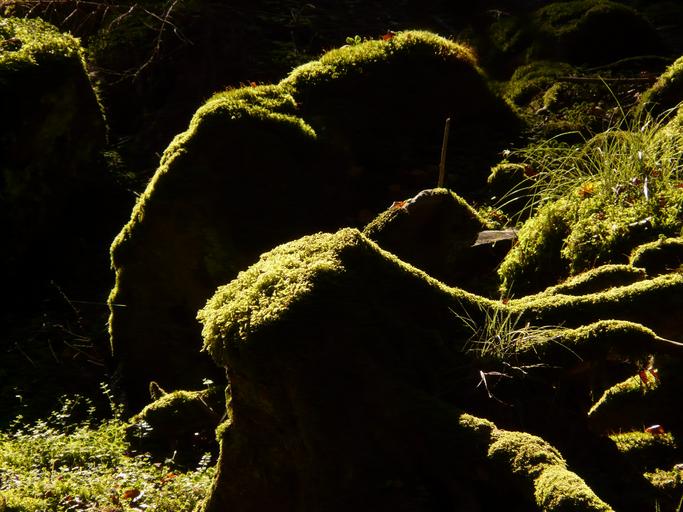 Keywords: log root forest tree moss light shadow hell dark green bemoost
