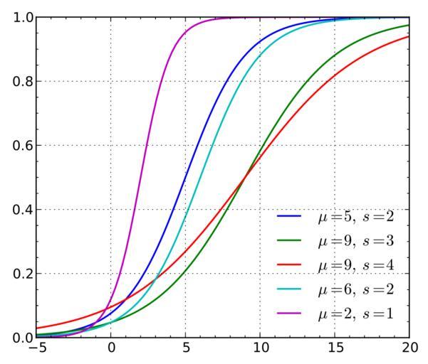Keywords: Logistic cdf.svg en The cumulative distribution function of a logistic distribution 2011-09-25 own Krishnavedala validSVG Source code python <syntaxhighlight lang python > from numpy import from matplotlib pyplot import from mpl_toolkits axes_grid axislines import SubplotZero e lambda mu s x exp mu-x /s cdf lambda mu s x 1 / 1 + e mu s x fig figure figsize 6 5 ax SubplotZero fig 111 fig add_subplot ax ax grid True ax minorticks_on x linspace -5 20 100 mu 5 9 9 6 2 s 2 3 4 2 1 for b in arange 5 ax plot x cdf mub sb x lw 1 5 label r' \mu d \ s d ' mub sb ' c 1\ /_2 ' ax set_ylim 0 1 ax set_xlim -5 20 ax legend loc 'lower right' frameon False fig savefig test svg bbox_inches tight pad_inches 15 </syntaxhighlight> cob Uploaded with UploadWizard Logistic distribution Created with Matplotlib Images with Python source code |