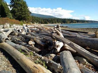 Keywords: logs beach beachcomber driftwood wood logging ocean trees