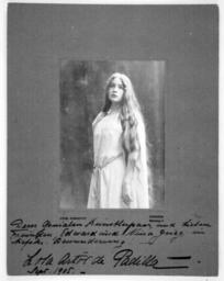 | Keywords: edvard grieg edvardgrieg vintage black and white blackandwhite historic norway lola artôt de padilla lolaartôtdepadilla woman portrait autograph 1905 standing opera soprano costume opera across the commons operaacrossthecommons monochrome people blackandwhite photo border outdoor black and white Artist: Herm. Hamnqvist Date/place: Sept. 1905, Stockholm Subject: Lola Artôt de Padilla Medium: photographic positive, B&W Notes: French-Spanish soprano. Written under the photo. "Dem Genialen Kunstlerpaar, und lieben Freunden, Edvard und Nina Grieg, in tiefsten Bewunderung. Lola Artôt de Padilla - Sept 1905" (The genius couple of artists and dear friends, Edavard and Nina Grieg in deepest admiration. Lola Artôt de Padilla - Sept. 1905) Persistent URL: Original belongs to the Edvard Grieg Archives at Bergen Public Library Original reference: EGM0287 Artist: Herm. Hamnqvist Date/place: Sept. 1905, Stockholm Subject: Lola Artôt de Padilla Medium: photographic positive, B&W Notes: French-Spanish soprano. Written under the photo. "Dem Genialen Kunstlerpaar, und lieben Freunden, Edvard und Nina Grieg, in tiefsten Bewunderung. Lola Artôt de Padilla - Sept 1905" (The genius couple of artists and dear friends, Edavard and Nina Grieg in deepest admiration. Lola Artôt de Padilla - Sept. 1905) Persistent URL: Original belongs to the Edvard Grieg Archives at Bergen Public Library Original reference: EGM0287 |