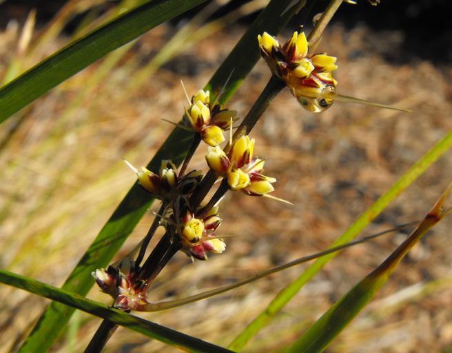 Keywords: Lomandralongifolia1.jpg en Lomandra longifolia at the Water Conservation Garden at Cuyamaca College in El Cajon California USA Identified by sign own Stickpen 2009-10-10 released to public domain Lomandra longifolia