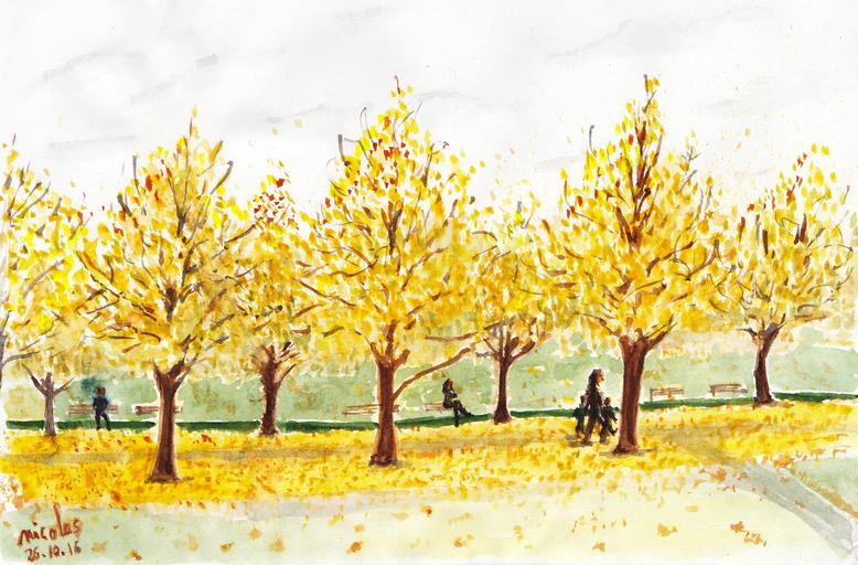 Keywords: watercolor aquarelle london londres outdoor tree plant Cet après-midi, les tilleuls de Regent's Park étaient flamboyants sous le soleil, j'ai pris mon aquarelle et ai peint sur un carnet Zap, pas vraiment adapté, mais je ne pouvais pas attendre... This afternoon, the lime-trees in Regent's Park were flamboyant under the sun, I took my watercolor and paint on a zap book, not really suitable, but I couldn't wait... Aquarelle, 21x14cm, 26 octobre 2016. Cet après-midi, les tilleuls de Regent's Park étaient flamboyants sous le soleil, j'ai pris mon aquarelle et ai peint sur un carnet Zap, pas vraiment adapté, mais je ne pouvais pas attendre... This afternoon, the lime-trees in Regent's Park were flamboyant under the sun, I took my watercolor and paint on a zap book, not really suitable, but I couldn't wait... Aquarelle, 21x14cm, 26 octobre 2016. |