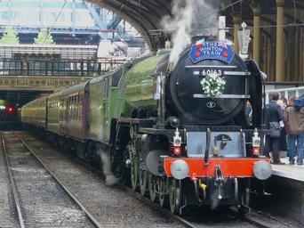 Keywords: london england great britain train locomotive engine depot station passenger cars tracks railroad railway flags outside transportation steam