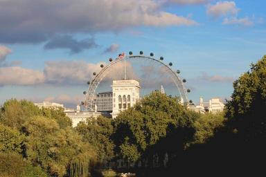 Keywords: london eye london eye england clouds sky trees water lake pond building trip round peace the flag of the