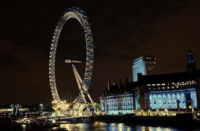 Keywords: london london eye wheel night blue thames river lighting