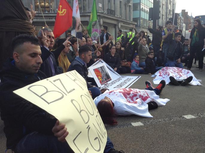 Keywords: London protest 2015 Ankara bombings (1).jpg Protesters at a demonstration in London mourning the victims of the 2015 Ankara bombings 2015-10-11 http //www amerikaninsesi com/content/ingilterede-ankara-saldirisi-protesto-edildi/3001493 html İngiltere'de Ankara Saldırısı Protesto Edildi Şükrü Bolat PD-USGov-VOA Demonstration in London against the Ankara bombings October 2015 Photographs by Şükrü Bolat |