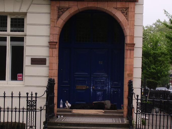 | Keywords: LondonHomeless2006.jpg A homeless person with dirty socks and a bottle of water sleeping in London England on Sunday 14 May 2006 In the doorway of Bradstock House 52 Russell Square Bloomsbury London WC1 I photographed this poor guy when I travelled to England I saw a lot of people like this 2006-05-14 Nikolaos S Karastathis http //www karastathis org www karastathis org I make this image available as public domain material Please use it to demonstrate how terrible poverty and homelessness is and help raise public awareness about this issue If there is no notion of public domain in your jurisdiction you can use it under GFDL 1 2 or any later version published by FSF or under Creative Commons BY-SA 2 5 Doors in the London Borough of Camden Homeless people in London Russell Square Blue doors in London May 2006 in London 2006 in the London Borough of Camden People in the London Borough of Camden Buildings in London numbered 52 |
