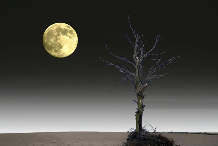 Keywords: lone tree moon the fullness of scenery landscape quiet night full moon moonlight