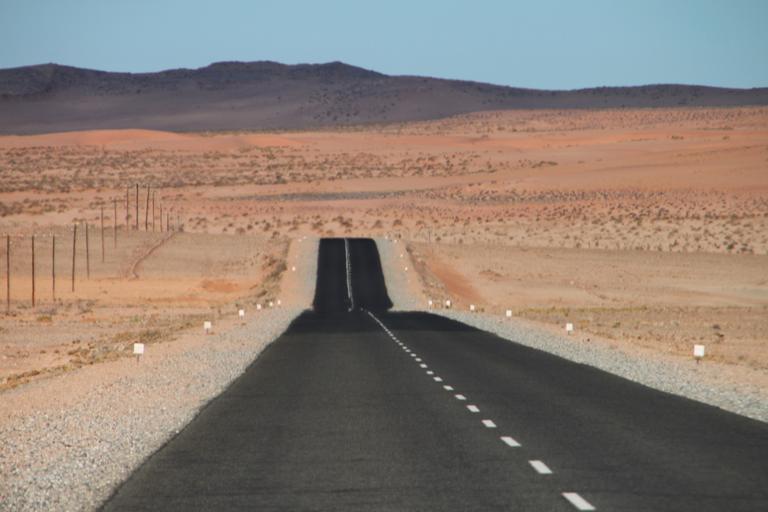 Keywords: loneliness road clouds distance horizon namibia africa desert sky dry hot