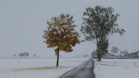 Keywords: loneliness road trees coldsnap trist allgäu autumn snow october 2012