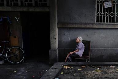Keywords: lonely granny ao retirement street china people chair