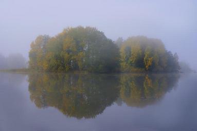 Keywords: long isthmus reserve water autumn sweden mist mirror image nature still mysterious atmosphere
