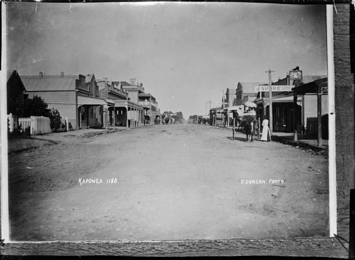 | Keywords: blackandwhite photo border monochrome outdoor road sea water black and white Looking down a main street in Kaponga, South Taranaki. Signs on the right hand side of the street advertise a dentist and saddler. Photograph taken by D Duncan (David Duncan, photographer in Opunake) circa 1908. Inscriptions: Inscribed - Photographer's title on negative -bottom left: KAPONGA 1183bottom right: D. DUNCAN. PHOTO. Quantity: 1 b&w original negative(s). Physical Description: Dry plate glass negative 6.5 x 4.75 inches Duncan, David, fl 1910s. Looking down a main street, Kaponga, South Taranaki District - Photograph taken by David Duncan. Price, William Archer, 1866-1948 :Collection of post card negatives. Ref: 1/2-001266-G. Alexander Turnbull Library, Wellington, New Zealand. natlib.govt.nz/records/23078277 Looking down a main street in Kaponga, South Taranaki. Signs on the right hand side of the street advertise a dentist and saddler. Photograph taken by D Duncan (David Duncan, photographer in Opunake) circa 1908. Inscriptions: Inscribed - Photographer's title on negative -bottom left: KAPONGA 1183bottom right: D. DUNCAN. PHOTO. Quantity: 1 b&w original negative(s). Physical Description: Dry plate glass negative 6.5 x 4.75 inches Duncan, David, fl 1910s. Looking down a main street, Kaponga, South Taranaki District - Photograph taken by David Duncan. Price, William Archer, 1866-1948 :Collection of post card negatives. Ref: 1/2-001266-G. Alexander Turnbull Library, Wellington, New Zealand. natlib.govt.nz/records/23078277 |