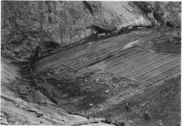 | Keywords: Looking downstream against upstream face of upstream cofferdam showing concrete surfacing in progress on Nevada end.... - NARA - 293794.jpg Scope and content Photograph from Volume Two of a series of photo albums documenting the construction of Hoover Dam Boulder City Nevada General notes 293794 Local identifier Department of the Interior Bureau of Reclamation Engineering and Research Center 05/18/1981 - 03/04/1988 NARA's Rocky Mountain Region Denver NRGA Building 48 Denver Federal Center West 6th Avenue and Kipling Street Denver CO 80225-0307 1933-02-06 Record group Record Group 115 Records of the Bureau of Reclamation 1889 - 2008 Record group ARC 444 Photograph albums compiled 1903 - 1972 Series ARC 293611 File unit File unit ARC Variant control numbers NAIL Control Number NRG-115-CONSTPHO85006-BC21521 Other versions <gallery> File Looking downstream against upstream face of upstream cofferdam showing concrete surfacing in progress on Nevada end - NARA - 293794 tiff tif File Looking downstream against upstream face of upstream cofferdam showing concrete surfacing in progress on Nevada end - NARA - 293794 jpg jpg </gallery> NARA-cooperation PD-USGov Construction of the Hoover Dam |