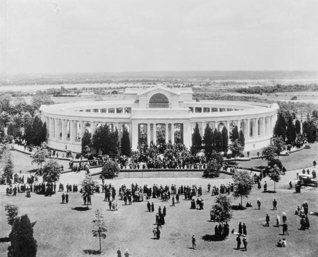 | Keywords: Looking E from Maine Mast Memorial at Arlington Memorial Amphitheater - circa 1915 to 1925.jpg en Looking from atop the USS Maine Mast Memorial due east at the Memorial Amphitheater in Arlington National Cemetery in Arlington County Virginia in the United States Not the existence of the Arlington Ridge Road cutting horizontally across the image about the same line as the top of the amphitheater Beyond that the U S Department of Agriculture Experimental Farm can be seen occupying the lowlands between the road and the Potomac River This section of the old Arlington Estate was turned over to the Department of Agriculture in 1900 and then relinquished to the Department of War in 1940 It was turned over to the cemetery in 1971 No construction can be seen on the Arlington Memorial Bridge to the far left which would begin in 1925 http //www loc gov/pictures/item/thc1995010303/PP/ Theodor Horydczak between May 1915 and January 1925 Arlington Memorial Amphitheater PD-USGov |