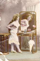Keywords: vintagepostcard travel woman dress pretty mirror