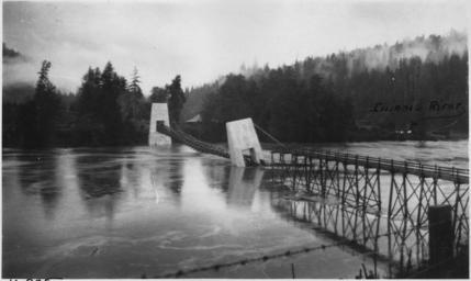 | Keywords: Looking south from north bank. At 9 am, Feb. 20, 1927, one hour after Pier "C" shirfted. Six trestle bents washed out... - NARA - 298243.tif Scope and content Angess Bridge over Rogue River in Siskiyou National Forest General notes 298243 Local identifier Department of Commerce Bureau of Public Roads Portland Regional Office 08/20/1949 - ca 1955 NARA's Pacific Alaska Region Seattle NRIAS 6125 Sand Point Way NE Seattle WA 98115-7999 1927-02-20 Record group Record Group 30 Records of the Bureau of Public Roads 1892 - 1972 Record group ARC 359 Federal Aid Project Files compiled 1919 - 1955 Series ARC 298240 File unit Angess Bridge over Rogue River Siskiyou National Forest ca 1927 - ca 1927 File unit ARC 298241 Variant control numbers NAIL Control Number NRIS-30-PORTFAP-OR486-14538 yes Other versions <gallery> File Looking_south_from_north_bank _At_9_am _Feb _20 _1927 _one_hour_after_Pier_ C _shirfted _Six_trestle_bents_washed_out _-_NARA_-_298243 tif tif File Looking_south_from_north_bank _At_9_am _Feb _20 _1927 _one_hour_after_Pier_ C _shirfted _Six_trestle_bents_washed_out _-_NARA_-_298243 jpg jpg </gallery> NARA-cooperation PD-USGov Rogue River-Siskiyou National Forest Damaged infrastructure Suspension bridges in Oregon February 1927 1927 in Oregon NARA TIF images with categorized JPGs |
