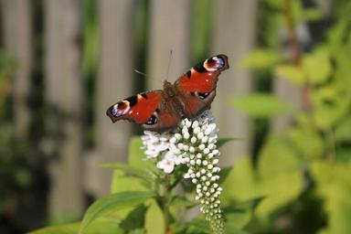 Keywords: loosestrife flower blossom bloom garden flower garden white butterfly peacock