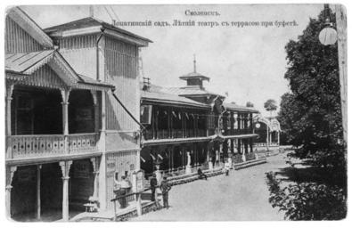 | Keywords: Lopatinskiy garden 6.jpg en Lopatinsky garden in Smolensk Summer Theater with a terrace and a buffet no longer exists ru Лопатинский сад в Смоленске Летний теат с те асой и буфетом ныне не существует О игинальная отк ытка е установлены before 1917 года PD-RusEmpire 20th-century postcards Postcards of Smolensk Lopatinsky garden |