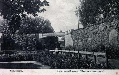 | Keywords: Lopatinskiy garden 7.jpg en Lopatinsky garden in Smolensk View of the bridge of sighs preserved to this day ru Лопатинский сад в Смоленске Вид на мостик вздохов сох анился до наших дней О игинальная отк ытка е установлены before 1917 года PD-RusEmpire 20th-century postcards Postcards of Smolensk Lopatinsky garden |
