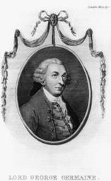 | Keywords: Lord george germaine.jpg en Lord George Germaine Print shows Lord George Sackville-Germain 1st viscount head-and-shoulders portrait facing right in oval medallion suspended by ribbon from pin with draped ribbon forming border across top and sides Published in April 1780 Illus in The London magazine 1780 April pp 147-148 Repository Library of Congress Rare Book and Special Collections Division Washington D C LOC-image cph 3a45476 1780-04 Author PD-old-100 George Germain 1st Viscount Sackville Men facing right in art |