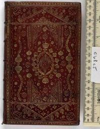 | Keywords: Lord's Supper - Upper cover (c48c5).jpg Style Cottage roof Oval motif Curl floral Curl ornamental Pointille comprising dots ; Caption Upper cover; Colour Red; Edge Unspecified exhibition history Decorative Technique Tooled in gold; Cover Material Goatskin includes morocco turkey etc According to Howard M Nixon this binding is probably not by Robert Steel object history Text 1688; London; Unspecified object type Cc-zero place of creation Binding England place of discovery See H M Nixon English Restoration Bookbindings London 1974 British Library image http //www bl uk/catalogues/bookbindings/LargeImage aspx RecordId 020-000000040 ImageId ImageId 39625 Copyright BL Lord's Supper Uploaded with GWToolset Lord's Supper - Upper cover c48c5 http //www webarchive org uk/bldatasets/bindings/4180_4 jpg Bookbinding 17th-century bookbinding British Library Bookbindings |