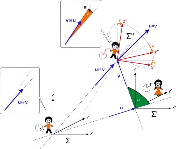 Keywords: Lorentz boosts and Thomas rotation 1.svg en A frame F is boosted with velocity v2 relative to another frame F' which is boosted with velocity v1 relative to another frame F 2015-12-14 own Maschen other versions cc-zero See also File Lorentz boosts and Thomas rotation 2 svg File Lorentz boosts and Thomas rotation 3 svg File Lorentz boosts and Thomas rotation 4 svg Special relativity Theoretical physics Mathematical physics Physics Mathematics Coordinate systems Motion Velocity Time Clocks Lorentz boosts Rotation Uploaded with UploadWizard |