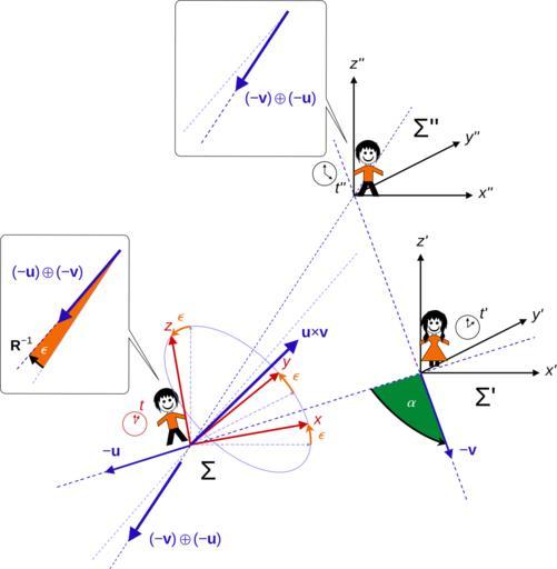Keywords: Lorentz boosts and Thomas rotation 2.svg en A frame F is boosted with velocity -v1 relative to another frame F' which is boosted with velocity -v2 relative to another frame F 2015-12-14 own Maschen other versions cc-zero See also File Lorentz boosts and Thomas rotation 1 svg File Lorentz boosts and Thomas rotation 3 svg File Lorentz boosts and Thomas rotation 4 svg Special relativity Theoretical physics Mathematical physics Physics Mathematics Coordinate systems Motion Velocity Time Clocks Lorentz boosts Rotation Uploaded with UploadWizard |
