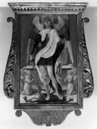 | Keywords: Lorenzo d'Alessandro da San Severino - The Crucifixion; Saint Michael - Walters 37496 - Reverse.jpg Walters Art Museum artwork Creator Lorenzo d'Alessandro da San Severino This double-sided painting is a standard intended to be carried during processions and other religious ceremonies It was probably made for a brotherhood devoted to Saint Michael located in a town in Marche On one side is the Crucifixion with the mourning Virgin and Saint John On the reverse Saint Michael tramples the devil and holds the scales in which he weighs a blessed soul; kneeling at his feet are members of the brotherhood clad in white habits with cowls as is usual in the orders of flagellants people who whip themselves to show penitence Zeri Italian paintings in the Walters Art Gallery 127 193-194 ca 1480 1490 early Renaissance tempera oil gold leaf panel cm 75 9 54 3 2 3 <br>St Michael painted surface cm 56 34 9 <br>Crucifixion painted surface cm 55 8 34 9 accession number 37 496 40438 Bernard Berenson date and mode of acquisition unknown Henry Walters Baltimore ca 1915 mode of acquisition unknown Walters Art Museum Henry Walters Acquired by Henry Walters ca 1915 Transcription On obverse with the Crucifixion in Virgin's halo MEMENTO MEI MATER DEI; Translation In Virgin's halo Remember me O Mother of God; Transcription In Christ's halo AVE LUX MUNDI; Translation In Christ's halo Hail Light of the World; Transcription In St John's halo IOHANNES place of origin Marche Italy Walters Art Museum license 3D Italian Renaissance paintings in the Walters Art Museum Lorenzo d'Alessandro Paintings in the Walters Art Museum Media contributed by the Walters Art Museum needs category review |