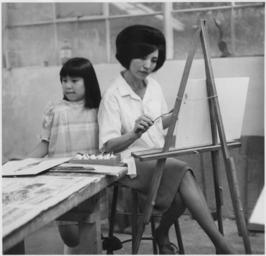 | Keywords: Loretta Graves and Her Daughter at a Painting Workshop Taught by Mrs. George Bolton. - NARA - 281621.jpg Scope and content General notes 281621 Local identifier Department of the Interior Indian Arts and Crafts Board Cherokee Field Office Cherokee North Carolina 1963 - NARA's Southeast Region Atlanta NRCA 5780 Jonesboro Road Morrow GA 30260 Record group Record Group 435 Records of the Indian Arts and Crafts Board 1929 - 1988 Record group ARC 723 Cherokee Field Office Records compiled 1968 - 1983 Series ARC 281596 File unit File unit ARC Variant control numbers NAIL Control Number NRCA-435-ART001-LG337E 1 Other versions <gallery> File Loretta_Graves_and_Her_Daughter_at_a_Painting_Workshop_Taught_by_Mrs _George_Bolton _-_NARA_-_281621 tif tif File Loretta_Graves_and_Her_Daughter_at_a_Painting_Workshop_Taught_by_Mrs _George_Bolton _-_NARA_-_281621 jpg jpg </gallery> NARA-cooperation PD-USGov Cherokee Cherokee people People painting Mothers and daughters in the United States |