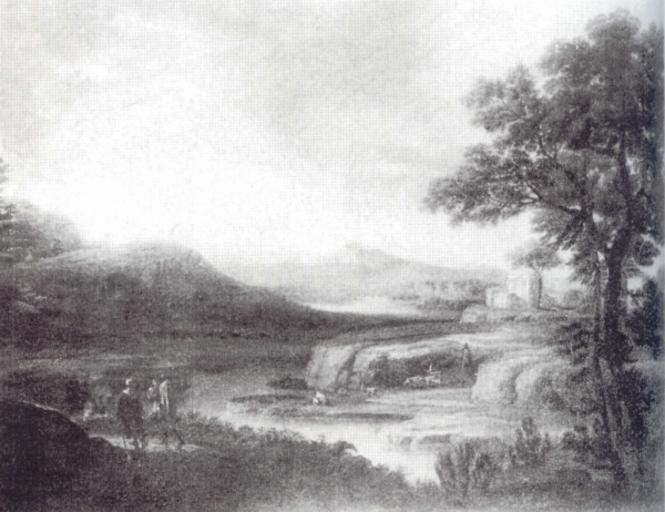 Keywords: Lorrain Landscape with Rovers.jpg Landscape with Rovers Krajobraz z wędrowcami Creator Claude Lorrain 1639 oil canvas cm 86 109 Catalogue of paintings removed from Poland by the German occupation authorities during the years 1939-1945 1 Foreign paintings / comp Władysław Tomkiewicz ; Ministry of Culture and Art Warsaw 1950 Editor Ministry of Culture and Art See also http //kolekcje mkidn gov pl/katalog/podglad ID 11153 Department of National Heritage Wartime losses an official webpage of Polish Ministry of Culture Art and National Heritage Signed Claudio / Roma 1639 PD-Art PD-old-100 Paintings by Claude Lorrain 17th-century foreign paintings lost in Poland during World War II 1630s paintings from France 1639 paintings |