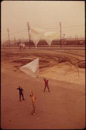 | Keywords: LOS ANGELES REACTIVE POLLUTANT PROGRAM (LARPP), A UNIQUE MULTI-AGENCY AIR POLLUTION RESEARCH STUDY SPONSORED BY THE... - NARA - 552362.jpg LOS ANGELES REACTIVE POLLUTANT PROGRAM LARPP ” A UNIQUE MULTI-AGENCY AIR POLLUTION RESEARCH STUDY SPONSORED BY THE COORDINATING RESEARCH COUNCIL A GOVERNMENT-INDUSTRY RESEARCH GROUP Scope and content LOS ANGELES REACTIVE POLLUTANT PROGRAM LARPP A UNIQUE MULTI-AGENCY AIR POLLUTION RESEARCH STUDY SPONSORED BY THE COORDINATING RESEARCH COUNCIL A GOVERNMENT-INDUSTRY RESEARCH GROUP USED IN THE PROJECT ARE THERMASONDES WEATHER-TESTING BALLOONS TETROONS AIRBORNE BUOYS USED TO MARK OFF GIVEN SECTIONS OF AIR FOR STUDY AND EPA HELICOPTERS FOR TRACING AND TAKING SAMPLES GROUND LEVEL SAMPLES ARE ALSO TAKEN INFORMATION IS TRANSMITTED BY RADAR NOAA NATIONAL OCEANIC AND ATMOSPHERIC ADMINISTRATION PERSONNEL RELEASE THE TETROONS FROM A SITE ON ALMEDA STREET NEAR 7TH STREET EARLY MORNING NOTE TRANSPONDERS FOR RECEIVING AND TRANSMITTING RADAR SIGNALS HANGING FROM EACH TETROON LOS ANGELES SKYLINE IN BACKGROUND General notes 552362 Local identifier 412-DA-9877 Environmental Protection Agency 12/02/1970 - NARA-Author Daniels Gene photographer Photographer 8463941 <br /> Los Angeles Los Angeles county California United States North and Central America inhabited place 4219264 34 05 -118 23 <br /> Still Picture Records Section Special Media Archives Services Division NWCS-S National Archives at College Park 8601 Adelphi Road College Park MD 20740-6001 09/1973 Record group Record Group 412 Records of the Environmental Protection Agency 1944 - 2006 Record group ARC 708 DOCUMERICA The Environmental Protection Agency's Program to Photographically Document Subjects of Environmental Concern compiled 1972 - 1977 Series ARC 542493 File unit File unit ARC Variant control numbers Agency-Assigned Identifier 165/37/009877<br /> NAIL Control Number NWDNS-412-DA-9877 Other versions <gallery> File LOS_ANGELES_REACTIVE_POLLUTANT_PROGRAM_ LARPP _A_UNIQUE_MULTI-AGENCY_AIR_POLLUTION_RESEARCH_STUDY_SPONSORED_BY_THE _-_NARA_-_552362 tif tif File LOS_ANGELES_REACTIVE_POLLUTANT_PROGRAM_ LARPP _A_UNIQUE_MULTI-AGENCY_AIR_POLLUTION_RESEARCH_STUDY_SPONSORED_BY_THE _-_NARA_-_552362 jpg jpg </gallery> NARA images of California - NARA-cooperation PD-USGov Los Angeles Reactive Pollutant Program A Tetroons 1973 in Los Angeles |