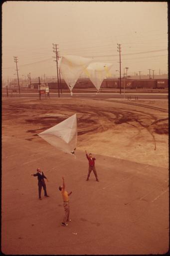 Keywords: LOS ANGELES REACTIVE POLLUTANT PROGRAM (LARPP), A UNIQUE MULTI-AGENCY AIR POLLUTION RESEARCH STUDY SPONSORED BY THE... - NARA - 552362.tif Scope and content LOS ANGELES REACTIVE POLLUTANT PROGRAM LARPP A UNIQUE MULTI-AGENCY AIR POLLUTION RESEARCH STUDY SPONSORED BY THE COORDINATING RESEARCH COUNCIL A GOVERNMENT-INDUSTRY RESEARCH GROUP USED IN THE PROJECT ARE THERMASONDES WEATHER-TESTING BALLOONS TETROONS AIRBORNE BUOYS USED TO MARK OFF GIVEN SECTIONS OF AIR FOR STUDY AND EPA HELICOPTERS FOR TRACING AND TAKING SAMPLES GROUND LEVEL SAMPLES ARE ALSO TAKEN INFORMATION IS TRANSMITTED BY RADAR NOAA NATIONAL OCEANIC AND ATMOSPHERIC ADMINISTRATION PERSONNEL RELEASE THE TETROONS FROM A SITE ON ALMEDA STREET NEAR 7TH STREET EARLY MORNING NOTE TRANSPONDERS FOR RECEIVING AND TRANSMITTING RADAR SIGNALS HANGING FROM EACH TETROON LOS ANGELES SKYLINE IN BACKGROUND General notes 552362 Local identifier 412-DA-9877 Environmental Protection Agency 12/02/1970 - NARA-Author Daniels Gene photographer Photographer 8463941 <br /> Los Angeles Los Angeles county California United States North and Central America inhabited place 4219264 34 05 -118 23 <br /> Still Picture Records Section Special Media Archives Services Division NWCS-S National Archives at College Park 8601 Adelphi Road College Park MD 20740-6001 09/1973 Record group Record Group 412 Records of the Environmental Protection Agency 1944 - 2006 Record group ARC 708 DOCUMERICA The Environmental Protection Agency's Program to Photographically Document Subjects of Environmental Concern compiled 1972 - 1977 Series ARC 542493 File unit File unit ARC Variant control numbers Agency-Assigned Identifier 165/37/009877<br /> NAIL Control Number NWDNS-412-DA-9877 yes Other versions <gallery> File LOS_ANGELES_REACTIVE_POLLUTANT_PROGRAM_ LARPP _A_UNIQUE_MULTI-AGENCY_AIR_POLLUTION_RESEARCH_STUDY_SPONSORED_BY_THE _-_NARA_-_552362 tif tif File LOS_ANGELES_REACTIVE_POLLUTANT_PROGRAM_ LARPP _A_UNIQUE_MULTI-AGENCY_AIR_POLLUTION_RESEARCH_STUDY_SPONSORED_BY_THE _-_NARA_-_552362 jpg jpg </gallery> NARA-cooperation PD-USGov NARA TIF images with categorized JPGs California |