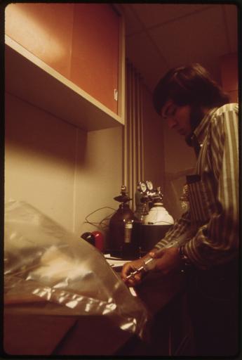 Keywords: LOS ANGELES REACTIVE POLLUTANT PROGRAM (LARPP), A UNIQUE MULTI-AGENCY AIR POLLUTION RESEARCH STUDY SPONSORED BY THE... - NARA - 552385.jpg Scope and content LOS ANGELES REACTIVE POLLUTANT PROGRAM LARPP A UNIQUE MULTI-AGENCY AIR POLLUTION RESEARCH STUDY SPONSORED BY THE COORDINATING RESEARCH COUNCIL A GOVERNMENT-INDUSTRY RESEARCH GROUP USED IN THE PROJECT ARE THERMASONDES WEATHER-TESTING BALLOONS TETROONS AIRBORNE BUOYS USED TO MARK OFF GIVEN SECTION OF AIR FOR STUDY AND EPA HELICOPTERS FOR TRACING AND TAKING SAMPLES GROUND LEVEL SAMPLES ARE ALSO TAKEN INFORMATION IS TRANSMITTED BY RADAR CALIFORNIA AIR RESOURCES BOARD LABORATORY AFTER SMOG FILLED AIR SAMPLE BAGS HAVE BEEN BROUGHT IN FROM HELICOPTERS THE SAMPLED AIR IS REMOVED IN KNOWN QUANTITIES AND RUN THROUGH TESTING MACHINES TO DETERMINE ITS COMPOSITION General notes 552385 Local identifier 412-DA-9900 Environmental Protection Agency 12/02/1970 - NARA-Author Daniels Gene photographer Photographer 8463941 <br /> Los Angeles Los Angeles county California United States North and Central America inhabited place 4219264 34 05 -118 23 <br /> Still Picture Records Section Special Media Archives Services Division NWCS-S National Archives at College Park 8601 Adelphi Road College Park MD 20740-6001 09/1973 Record group Record Group 412 Records of the Environmental Protection Agency 1944 - 2006 Record group ARC 708 DOCUMERICA The Environmental Protection Agency's Program to Photographically Document Subjects of Environmental Concern compiled 1972 - 1977 Series ARC 542493 File unit File unit ARC Variant control numbers Agency-Assigned Identifier 165/60/009900<br /> NAIL Control Number NWDNS-412-DA-9900 Other versions <gallery> File LOS_ANGELES_REACTIVE_POLLUTANT_PROGRAM_ LARPP _A_UNIQUE_MULTI-AGENCY_AIR_POLLUTION_RESEARCH_STUDY_SPONSORED_BY_THE _-_NARA_-_552385 tif tif File LOS_ANGELES_REACTIVE_POLLUTANT_PROGRAM_ LARPP _A_UNIQUE_MULTI-AGENCY_AIR_POLLUTION_RESEARCH_STUDY_SPONSORED_BY_THE _-_NARA_-_552385 jpg jpg </gallery> NARA-cooperation PD-USGov Los Angeles Reactive Pollutant Program Tetroons |