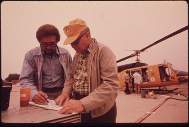 | Keywords: LOS ANGELES REACTIVE POLLUTANT PROGRAM (LARPP), A UNIQUE MULTI-AGENCY AIR POLLUTION RESEARCH STUDY SPONSORED BY THE... - NARA - 552366.tif Scope and content LOS ANGELES REACTIVE POLLUTANT PROGRAM LARPP A UNIQUE MULTI-AGENCY AIR POLLUTION RESEARCH STUDY SPONSORED BY THE COORDINATING RESEARCH COUNCIL A GOVERNMENT-INDUSTRY RESEARCH GROUP USED IN THE PROJECT ARE THERMASONDES WEATHER-TESTING BALLOONS TETROONS AIRBORNE BUOYS USED TO MARK OFF GIVEN SECTIONS OF AIR FOR STUDY AND EPA HELICOPTERS FOR TRACING AND TAKING SAMPLES GROUND LEVEL SAMPLES ARE ALSO TAKEN INFORMATION IS TRANSMITTED BY RADAR ROY EVANS IN BLUE SHIRT IS IN COMMAND OF THE HELICOPTER OPERATIONS FOR EPA HE IS DISCUSSING PLANS WITH ONE OF HIS PILOTS AT LAUNCH SITE IN EL MONTE General notes 552366 Local identifier 412-DA-9881 Environmental Protection Agency 12/02/1970 - NARA-Author Daniels Gene photographer Photographer 8463941 <br /> Los Angeles Los Angeles county California United States North and Central America inhabited place 4219264 34 05 -118 23 <br /> Still Picture Records Section Special Media Archives Services Division NWCS-S National Archives at College Park 8601 Adelphi Road College Park MD 20740-6001 09/1973 Record group Record Group 412 Records of the Environmental Protection Agency 1944 - 2006 Record group ARC 708 DOCUMERICA The Environmental Protection Agency's Program to Photographically Document Subjects of Environmental Concern compiled 1972 - 1977 Series ARC 542493 File unit File unit ARC Variant control numbers Agency-Assigned Identifier 165/41/009881<br /> NAIL Control Number NWDNS-412-DA-9881 yes Other versions <gallery> File LOS_ANGELES_REACTIVE_POLLUTANT_PROGRAM_ LARPP _A_UNIQUE_MULTI-AGENCY_AIR_POLLUTION_RESEARCH_STUDY_SPONSORED_BY_THE _-_NARA_-_552366 tif tif File LOS_ANGELES_REACTIVE_POLLUTANT_PROGRAM_ LARPP _A_UNIQUE_MULTI-AGENCY_AIR_POLLUTION_RESEARCH_STUDY_SPONSORED_BY_THE _-_NARA_-_552366 jpg jpg </gallery> NARA-cooperation PD-USGov NARA TIF images with categorized JPGs California Los Angeles Reactive Pollutant Program Helicopters of the Environmental Protection Agency El Monte California Men at work in California Bell 212 |
