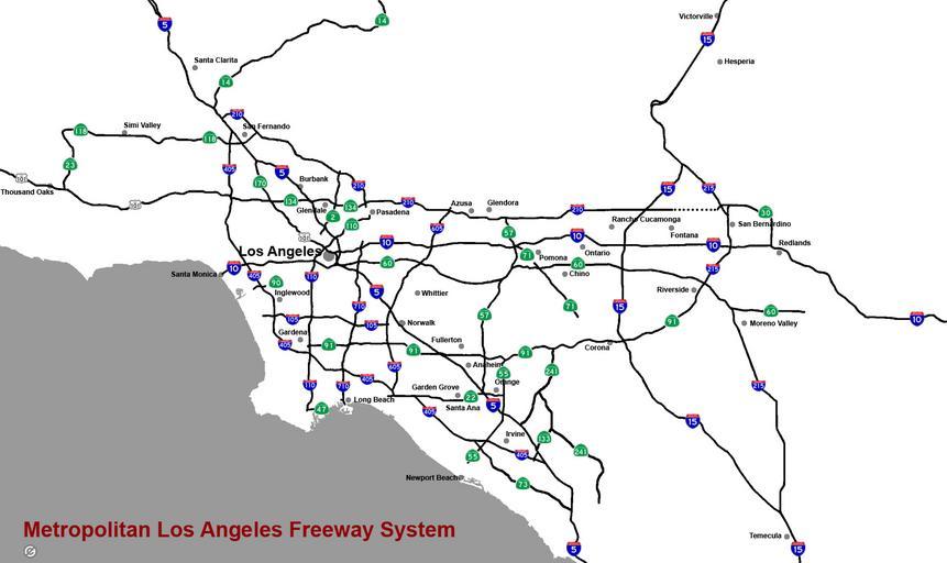 Keywords: Losangelesx.jpg Map of the Metropolitan Los Angeles Freeway system Created by User Mikeetc Road transport in Los Angeles 2006-08-30 own assumed Ulfer Maps of cities in California
