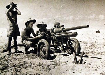 | Keywords: outdoor Lot 11588-1: North African Campaign. Australians Try Out Captured Gun On Alamein Sea. Australians holding the northern sectors of the line near Alamein, dragged a captured Breda 47mm anti-tank gun down to the beach to try it out. They thoroughly enjoyed a morning’s shooting. Note, the binoculars. Office of War Information Photograph. (2016/02/11). Lot 11588-1: North African Campaign. Australians Try Out Captured Gun On Alamein Sea. Australians holding the northern sectors of the line near Alamein, dragged a captured Breda 47mm anti-tank gun down to the beach to try it out. They thoroughly enjoyed a morning’s shooting. Note, the binoculars. Office of War Information Photograph. (2016/02/11). |