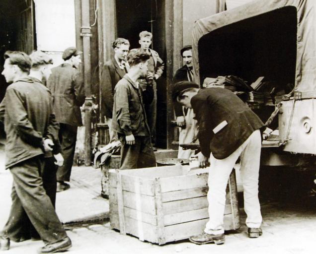 | Keywords: Lot 11611-14: Liberation of France, World War II. French disposing of Nazi propaganda literature, near Cherbourg, France, summer 1944. Office of War Information Photograph by Weston Hayes, 29252. (2016/02/25) Lot 11611-14: Liberation of France, World War II. French disposing of Nazi propaganda literature, near Cherbourg, France, summer 1944. Office of War Information Photograph by Weston Hayes, 29252. (2016/02/25) | ||||
