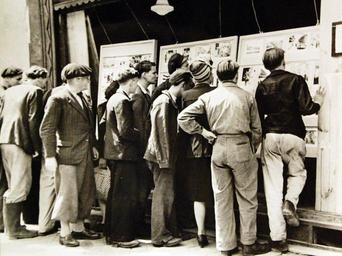 | Keywords: Lot 11611-7: Liberation of France, Cherbourg, France, Summer 1944. Crowd gathers before Allied picture display in Cherbourg crowd around a picture display in the windows of the Psychological Warfare Division of the Allied Expeditionary Force. Cut off from the world during the four years of Nazi occupation, civilians from the Normandy beach village to the great port city were found hungry for news and pictures. Photographed by Weston Haynes, 29251. Office of War Information Photograph. (2016/02/25) Lot 11611-7: Liberation of France, Cherbourg, France, Summer 1944. Crowd gathers before Allied picture display in Cherbourg crowd around a picture display in the windows of the Psychological Warfare Division of the Allied Expeditionary Force. Cut off from the world during the four years of Nazi occupation, civilians from the Normandy beach village to the great port city were found hungry for news and pictures. Photographed by Weston Haynes, 29251. Office of War Information Photograph. (2016/02/25) |