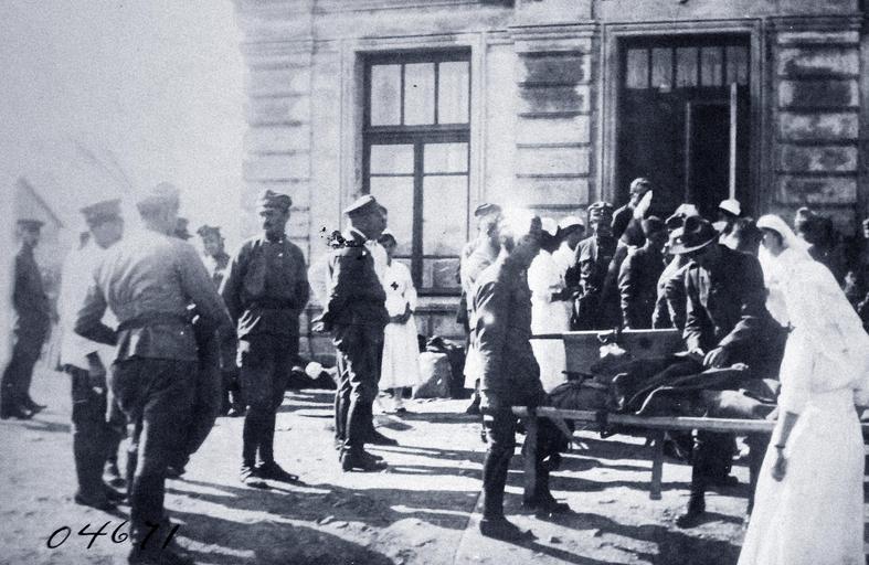 | Keywords: people monochrome LOT 3029-4 (4671): Russian Intervention, 1918-20. American Red Cross Collection. Wounded soldiers arriving at Russian Island, American Red Cross Hospital Vladivostok. Lady in white in foreground is Miss Eugene Patterson, sister of Lieutenant Commander Patterson, side of Vice Admiral Austin M. Knight. Miss Patterson is a volunteer nurse’s aide. Bending over patient is Dr. O.T. Logan, Surgeon in Charge. Photograph received February 1919. (5/29/2015). LOT 3029-4 (4671): Russian Intervention, 1918-20. American Red Cross Collection. Wounded soldiers arriving at Russian Island, American Red Cross Hospital Vladivostok. Lady in white in foreground is Miss Eugene Patterson, sister of Lieutenant Commander Patterson, side of Vice Admiral Austin M. Knight. Miss Patterson is a volunteer nurse’s aide. Bending over patient is Dr. O.T. Logan, Surgeon in Charge. Photograph received February 1919. (5/29/2015). |