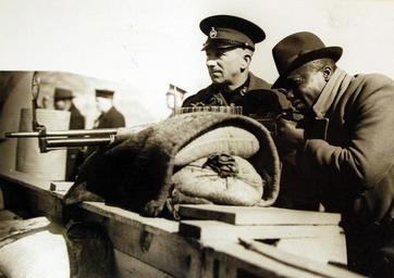 | Keywords: Lot-3478-2: British Activities, WWII. Northern Anti-Aircraft Gunnery School for Inter-Allied Merchant Seaman. Seamen of almost all nationalities are trained in anti-aircraft gunnery by Royal Navy instructors at a Northern gunnery establishment. Chinese, Dutch, Belgians and Africans all go voluntarily to learn how to handle defense weapons to repel enemy aircraft attacks. Shown: A West Indian fires a Lewis gun. Office of Emergency Management. (2016/03/04). Lot-3478-2: British Activities, WWII. Northern Anti-Aircraft Gunnery School for Inter-Allied Merchant Seaman. Seamen of almost all nationalities are trained in anti-aircraft gunnery by Royal Navy instructors at a Northern gunnery establishment. Chinese, Dutch, Belgians and Africans all go voluntarily to learn how to handle defense weapons to repel enemy aircraft attacks. Shown: A West Indian fires a Lewis gun. Office of Emergency Management. (2016/03/04). |