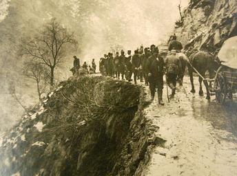 | Keywords: outdoor Lot 3619-6: German Military Activities, World War I. Serbian troops, now prisoners-of-war in Belgrade, march into German captivity as they pass a German transport train in a mountain pass between Macedonia and Montenegro, 1915. Photograph by F.J.M. Reshe, Munchen, Germany. (10/2/2015). Lot 3619-6: German Military Activities, World War I. Serbian troops, now prisoners-of-war in Belgrade, march into German captivity as they pass a German transport train in a mountain pass between Macedonia and Montenegro, 1915. Photograph by F.J.M. Reshe, Munchen, Germany. (10/2/2015). |
