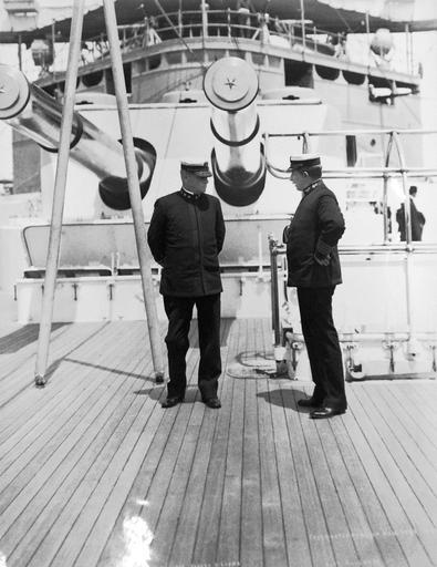| Keywords: blackandwhite monochrome black and white Lot 5238-2: Commander in Chief, North Atlantic Fleet, Rear Admiral Robley D. Evans, USN, (left), and Captain John E. Pillsbury, (right), on the deck of the U.S. Navy battleship, USS Maine (Battleship #10), near one of the 12” guns. Photographed by Byron, June 4, 1906. (6/5/2015). Lot 5238-2: Commander in Chief, North Atlantic Fleet, Rear Admiral Robley D. Evans, USN, (left), and Captain John E. Pillsbury, (right), on the deck of the U.S. Navy battleship, USS Maine (Battleship #10), near one of the 12” guns. Photographed by Byron, June 4, 1906. (6/5/2015). |