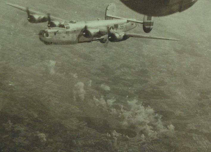 | Keywords: Lot-5279-18:  Allied Air Raids in Europe, circa 1943-44. A German chemical plant, the Ober Raderach Works, at Friedrichshafen, Germany, can be seen covered with some as this B-24 Liberator of the 15th Army Air Force comes off target.  Heavy bombers attacked this strategic point on August 16, 1944, scoring hits in the areas of the hydrogen an final processing plants.   Photographed by Miguel M. Garcia, U.S. Army Photograph.  Note, the U.S. Navy’s designation for the B-24 was PB4Y-1. (2015/10/30).   Photographed through Mylar sleeve.      Lot-5279-18:  Allied Air Raids in Europe, circa 1943-44. A German chemical plant, the Ober Raderach Works, at Friedrichshafen, Germany, can be seen covered with some as this B-24 Liberator of the 15th Army Air Force comes off target.  Heavy bombers attacked this strategic point on August 16, 1944, scoring hits in the areas of the hydrogen an final processing plants.   Photographed by Miguel M. Garcia, U.S. Army Photograph.  Note, the U.S. Navy’s designation for the B-24 was PB4Y-1. (2015/10/30).   Photographed through Mylar sleeve. |