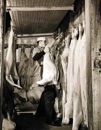 | Keywords: Lot-5489-4: All meat is kept in cold storage to ensure its being in A-1 condition for U.S. Sailors, WWII. U.S. Navy Photograph. Courtesy of the Library of Congress. (2016/06/17). Lot-5489-4: All meat is kept in cold storage to ensure its being in A-1 condition for U.S. Sailors, WWII. U.S. Navy Photograph. Courtesy of the Library of Congress. (2016/06/17). |