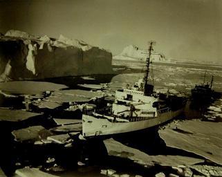 | Keywords: monochrome Lot 5967-1: U.S. Coast Guard Icebreakers and U.S. Navy Task Group in Arctic Mission. Looking like cracked white frosting on a chocolate cake are these big sheets of ice, as the U.S. Coast Guard Cutter Eastwind (WAGB-279) travels through them. The ship’s helicopter hovers near to get this shot of the vessel and the ocean-going tug following close behind during a recent Arctic cruise. Note the huge icebergs in the background. The Coast Guard ice-breakers Eastwind and Northwind (WAGB-282) were among the heavy-duty icebreakers in a Navy Task Group which raced against time during the brief Arctic “summer” on two missions known operationally as NANOOK 52 (supplying icebound weather stations in the Arctic) and SUMAC. Official U.S. Coast Guard Photograph, release September 1952. Photographed through Mylar sleeve. (2015/10/09). Lot 5967-1: U.S. Coast Guard Icebreakers and U.S. Navy Task Group in Arctic Mission. Looking like cracked white frosting on a chocolate cake are these big sheets of ice, as the U.S. Coast Guard Cutter Eastwind (WAGB-279) travels through them. The ship’s helicopter hovers near to get this shot of the vessel and the ocean-going tug following close behind during a recent Arctic cruise. Note the huge icebergs in the background. The Coast Guard ice-breakers Eastwind and Northwind (WAGB-282) were among the heavy-duty icebreakers in a Navy Task Group which raced against time during the brief Arctic “summer” on two missions known operationally as NANOOK 52 (supplying icebound weather stations in the Arctic) and SUMAC. Official U.S. Coast Guard Photograph, release September 1952. Photographed through Mylar sleeve. (2015/10/09). |