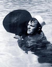 | Keywords: monochrome outdoor Lot-741-4: U.S. Coast Guard, WWII. Coast Guardsmen Learn to Swim For Lives. Jumping overboard without a life jacket, a seaman abandoning ship can make a “balloon” out of his seabag that will keep afloat for hours, Coast Guardsman Robert F. Penaluna demonstrates. The seabag can be inflated, Coast Guardsmen are taught in a functional swimming course at Miami, Florida, either by holding the open end down while jumping from the ship or by swinging it over the head in a wide arc after the survivor is already in the water. U.S. Coast Guard Photograph. Courtesy of the Library of Congress. Photographed through Mylar sleeve. (2016/06/03). Lot-741-4: U.S. Coast Guard, WWII. Coast Guardsmen Learn to Swim For Lives. Jumping overboard without a life jacket, a seaman abandoning ship can make a “balloon” out of his seabag that will keep afloat for hours, Coast Guardsman Robert F. Penaluna demonstrates. The seabag can be inflated, Coast Guardsmen are taught in a functional swimming course at Miami, Florida, either by holding the open end down while jumping from the ship or by swinging it over the head in a wide arc after the survivor is already in the water. U.S. Coast Guard Photograph. Courtesy of the Library of Congress. Photographed through Mylar sleeve. (2016/06/03). |