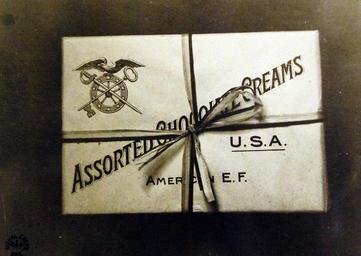 | Keywords: text writing sign Lot-8318-9: A box of candy manufactured by the Quartermaster Corps for the A.E.F. This candy is kept continually on sale at the Q.M.C Sales Commissaries and Travelling Sales Stores, Paris, France, December 26, 1918. U.S. Army Signal Corps Photograph. Courtesy of the Library of Congress. (2016/07/22). Lot-8318-9: A box of candy manufactured by the Quartermaster Corps for the A.E.F. This candy is kept continually on sale at the Q.M.C Sales Commissaries and Travelling Sales Stores, Paris, France, December 26, 1918. U.S. Army Signal Corps Photograph. Courtesy of the Library of Congress. (2016/07/22). |