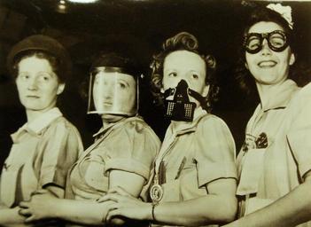 | Keywords: groupshot people indoor Lot-9433-3: In The Front Rank of America’s Growing Army of Women War Workers. America’s women, no less than her men, are doing their part in the Allied war effort. Their menfolk in the Armed Services at home and abroad, they are taking over the war-factory jobs they left behind. They are fighters in the “Front Line of Production,” helping to keep the united war machine rolling. Shown: Their uniforms are overalls and slacks. Their armor, protective masks and goggles – safety devices required for certain types of work. Office of War Information Photograph, 16-22 April 1942. Original photograph is small. (2015/12/18). Lot-9433-3: In The Front Rank of America’s Growing Army of Women War Workers. America’s women, no less than her men, are doing their part in the Allied war effort. Their menfolk in the Armed Services at home and abroad, they are taking over the war-factory jobs they left behind. They are fighters in the “Front Line of Production,” helping to keep the united war machine rolling. Shown: Their uniforms are overalls and slacks. Their armor, protective masks and goggles – safety devices required for certain types of work. Office of War Information Photograph, 16-22 April 1942. Original photograph is small. (2015/12/18). |